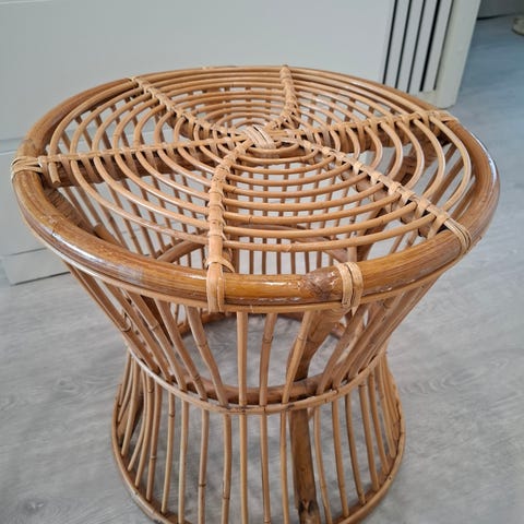 Myydään rottinkinen sivu-/kukkapöytä. 24,5x24,5x55