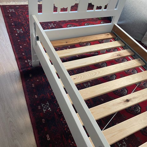Sopii lapselle siirtymävaiheessa pinnasängystä isompaan sänkyyn, sänkyä voi jatkaa lapsen kasvaessa. 80×200 cm.