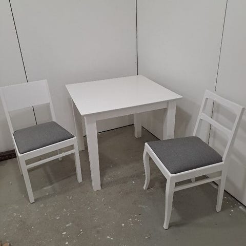 Myydään kuvanmukainen pöytä+3 tuolia. 70x70