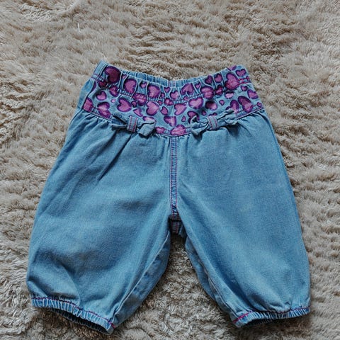 Ihana farkkupaita röyhelöhihoilla. Koko 98. Hyvässä kunnossa.