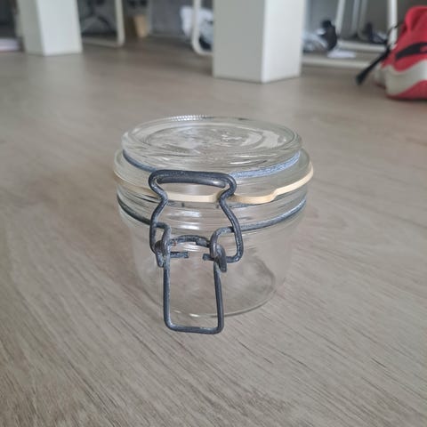 IKEA lasiset säilytyspurkit 4 kpl harmaalla muovikannella.