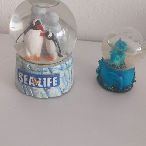Kaksi lumisadepalloa, 9.5cm ja 13cm