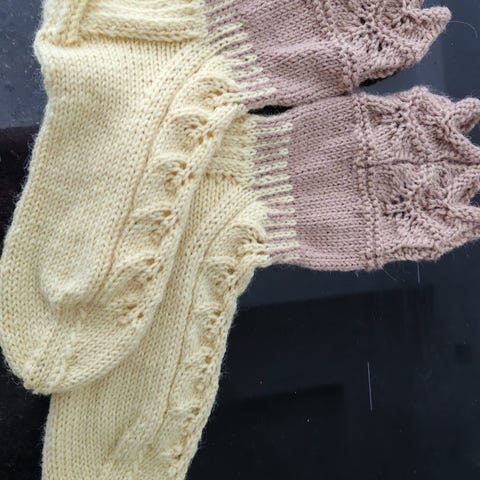 Käsintehdyt punaiset pitsineule sukat kokoa 38 - 40