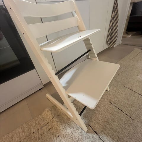 Myydään pääosin hyväkuntoinen stokken clikk syöttötuoli. Pientä kulumaa, sekä jalkatuen toinen kannatin rikki. Jalkatuki pysyy paikallaan, mutta isommin painoa ei kestä. (Meillä käytetty toisen lapsen kohdalla ilman jalkatukea.)