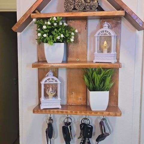 Myydään itse tehty seinähylly se on tosi kaunis ja moderni siihen voi laittaa vaikka ne kuvassa olevat koristeet tai lyhty.