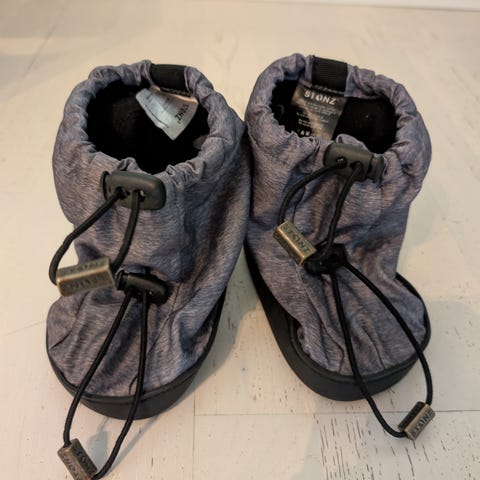Stonz booties töppöset vauvalle. M-koko. Fleecevuorelliset. Toisesta töppösestä yksi kuminauha katkennut, josta kuva ylempänä, ei vaikuta käyttöön. Muutoin ehjät ja hyväkuntoiset.😊