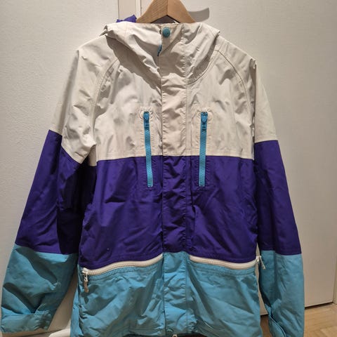 Takki on erinomaisessa käytetyssä kunnossa. Huolellisesti pidetty, ei repeämiä tai vaurioita. Kaikki vetoketjut ja tarranauhakiinnitykset toimivat täydellisesti. Sopii lumilautailuun ja muihin talviaktiviteetteihin.