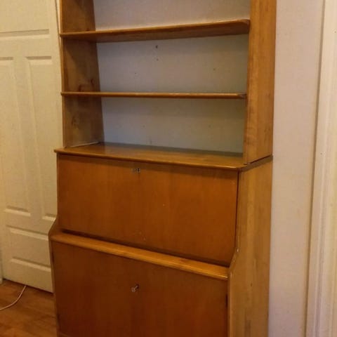 Vintage kokonaisuus 60 luvulta. Maalattu aikoinaan vaaleanharmaaksi, maalin alla on perimätiedon mukaan ehjä tiikkiviilu.