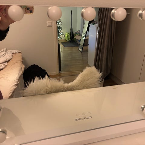 Meikkipeili, jossa himmennettävät, lämpimänvalkoiset LED-valot.