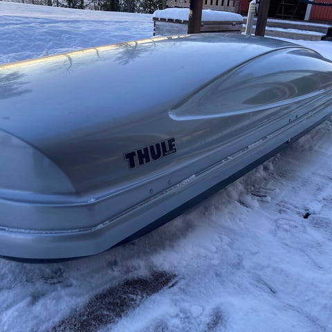 Myydään kuvan suksiboxi. Malli Thule Atlantis 900, vastaa Thule Pasific 900 mallia. Pituus 235cm, leveys 90cm. Korkeus noin 40cm. Kiinnitetään FastGrip pikalukoilla. Tosella tilava kattolaatikko.