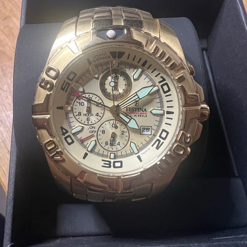 Festina Chronograph, mukana erillinen vaihtoranneke, musta elastomeeri. Kellon halkaisija 45mm, F20327. Vesitiivis 10 atm. Mukana myös metallirannekkeen lisäpalat koon säätöä varten.