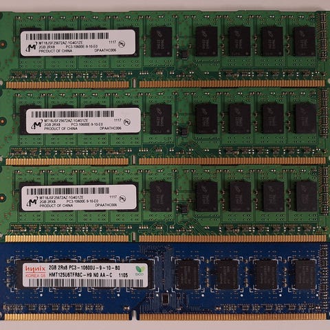 toimii niin kuin pitääkin.Micron DDR3 RAM-muistit Kolme kappaletta, kukin 2 Gt, ja yksi kappale, 4 Gt Neljä kappaletta. moduuli. Tyyppi DDR3, nopeus PC3 Soveltuu pöytätietokoneisiin, joissa on DDR3-muistipaikat ja tuki kyseiselle nopeudelle ja jännitteelle