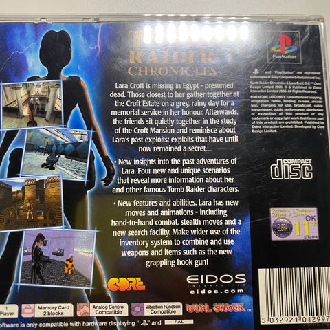 Ihan ok kunnossa oleva Tomb Raider PS1 peli. Levyssä on joitain pieniä pintanaarmuja.