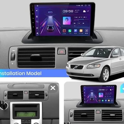 Langattomalla Android auto / Apple CarPlay toiminnolla varustettu Mekeden M95S Android soitin, jossa suoraan Volvo S60, V70 ja XC70 2004-2007 malleihin sopiva asennuskehys ja johtosarja.