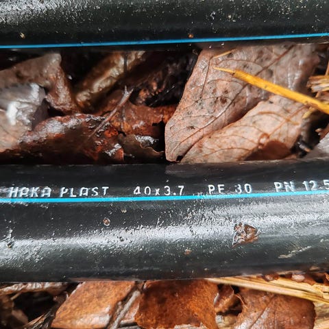 40x3.7 50m paineputki kieppi, 1.5m kiinteä karanjatko ja venttiili.