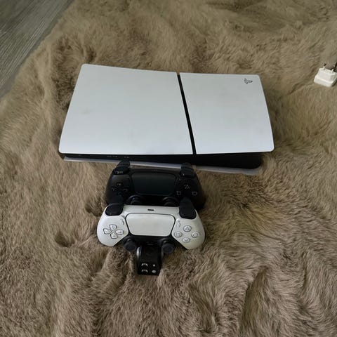 Sony PlayStation 5 pelikonsoli valkoinen. Konsolissa on valkoinen kotelo ja mukana DualSense-ohjain samassa värissä. Laite soveltuu PlayStation 5 -peleille ja tarjoaa tuen nykyaikaisille pelitoiminnoille, kuten korkealle kuvanlaadulle ja nopeille latausajoille. Takapaneelissa on useita liitäntöjä verkkokaapelille, HDMI-kaapelille, virtajohdolle ja muille oheislaitteille. Tarkemmat tekniset tiedot, kuten tallennustilan koko, riippuvat konsolin tarkasta malliversiosta.