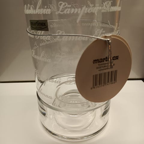 Martinex Lasinen kynttelikkö🤍kauniilla kirjoituksilla.🤍