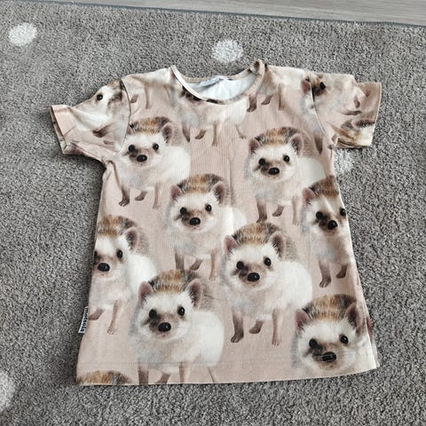 Metsolan kankaasta ommeltu t-paita 92cm koossa. Vastaa kokoaan. Ehjä ja tahraton, hieman uudesta haalistunut. Hajusteeton, tupakoimaton ja homeeton talous