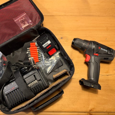 Würth BS 10-A akkuruuvinväännin 10,8V. Sarja sisältää akkuruuvinvääntimen, laturin, irrotettavan akun sekä kovan muovilaukun säilytystä ja kuljetusta varten. Soveltuu ruuvaus- ja kevyisiin poraustöihin kotona ja työmaalla yhteensopivien bittien ja poranterien kanssa.