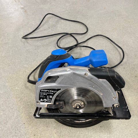 Käsipyörösaha 800 W. Terän halkaisija 140 mm. Toimiva laite.