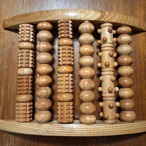 Vyöhyketerapialauta jalkapohjille. Laudassa on värillinen jalkapohjakartta, johon on merkitty eri vyöhykkeet. Laudassa on kohollaan olevia puunuppeja, jotka painavat jalkapohjan eri pisteitä. Soveltuu aikuisen jalkapohjien vyöhykepisteiden käsittelyyn seisten tai istuen käyttäen laudan päällä painoa jaloille. Lautaa käytetään noin 5 min kerralla muutaman kerran viikossa.
