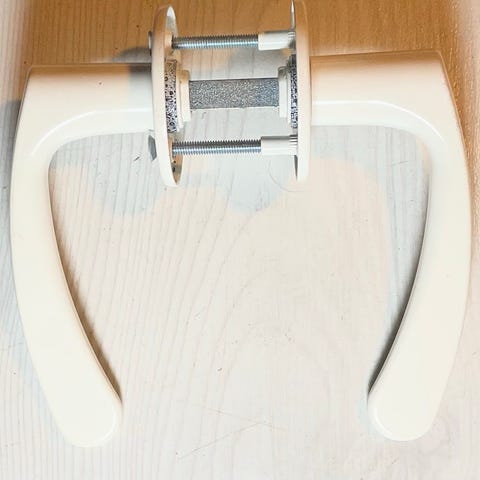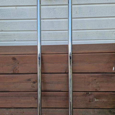 Metallinen oven kahva. Sisältää kaksi vastakkaista kahvaa ja väliin tulevan kiinnitystangon. Soveltuu sisäoven kahvaksi, jossa on läpioven menevä kiinnitys. Väriltään hopea/metalli, kahvojen ulkopinnassa tumma muovinen tai kuminen osa paremman otteen vuoksi. Tarkemmat mitat ja kiinnitystapa kannattaa varmistaa omasta ovesta ennen asennusta.