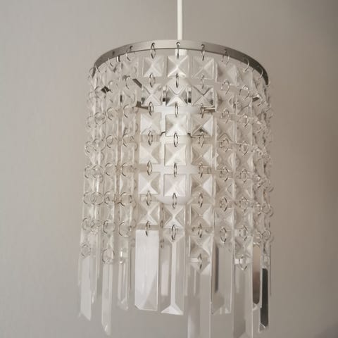 Muuton tieltä näyttävä riippuvalaisin, jossa on useita lasipalloja, jotka heijastavat valoa kauniisti.