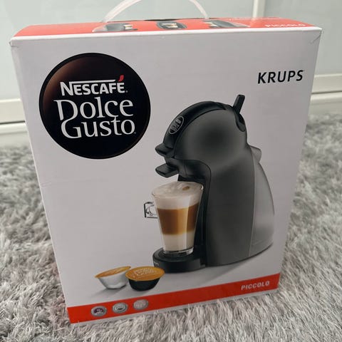Dolce Gusto kapselikahvinkeitin. Väri musta‑valkoinen ja punainen virtajohto. Laitteessa on irrotettava vesisäiliö ja tippakaukalo. Sopii Dolce Gusto -kahvikapseleille erilaisten kuumien juomien valmistukseen kotona tai toimistossa.