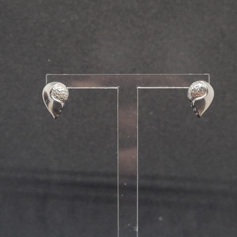 14 karaatin valkokultaiset Kultajousen puoli hoopsit tappikiinnityksellä ja kirkkailla zirkonioilla. Leimat 585 KJ löytyvät sekä tapeista että kannoista, katso kuvat. Paino noin 1,7g.