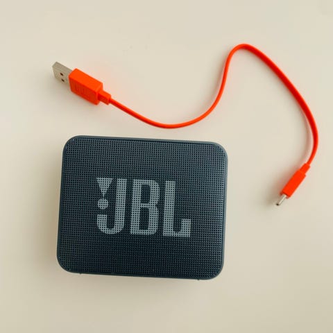 JBL Bluetooth-kaiutin musta. Kannettava sylinterinmuotoinen kaiutin, jossa kangaspintainen kuori ja päädyissä JBL-logolla varustetut elementit. Yläosassa painikkeet virralle, äänenvoimakkuudelle ja Bluetooth-yhteydelle sekä akun varauksen merkkivalot. Sivussa rannelenkki helpottamaan kantamista ja ripustamista. Soveltuu langattomaan musiikin kuunteluun esimerkiksi puhelimen, tabletin tai tietokoneen kanssa.