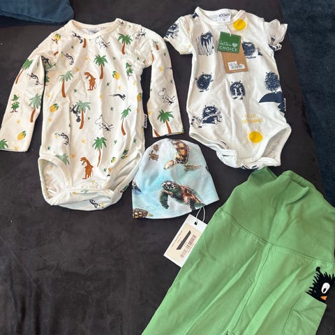 Ehjiä vauvan vaatteita. Normaalia haalistumaa ja joissain vielä hintalappu paikoillaan. Ei lemmikkejä. Kuvissa koko tietoja. Nouto tai lähetys.