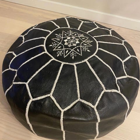 Marokkolainen nahka pouf. Nahka tosi kivasti patinoitunut, mutta pinnassa myös kissan raapimlsjälkiä. Itseäni ne ei ole häirinnyt ja mahdollisesti jollain käsittelyllä ovat fiksattavissa. Yleiskunto tosi hyvä. Myyn tyhjänä, mutta mahdollisuus saada jotain täytteitä mukaan. Voi täyttää kaikenlaisilla tekstiileillä.