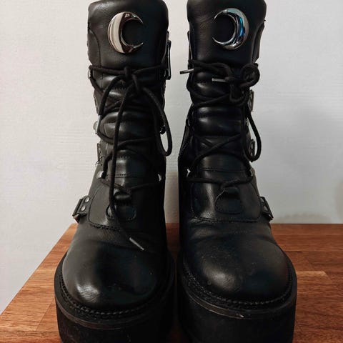 Alle 10 kertaa käyttöön päässeet, erityisesti isoäitien potkimiseen soveltuvat hyväkuntoiset jalkineet kaupan. Sivutaskut on oikeat taskut.