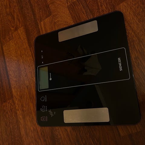 Myydään toimiva ja ehjä digitaalinen vaaka, jossa myös kehonkoostumusmittaus.