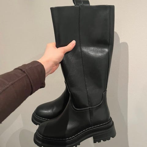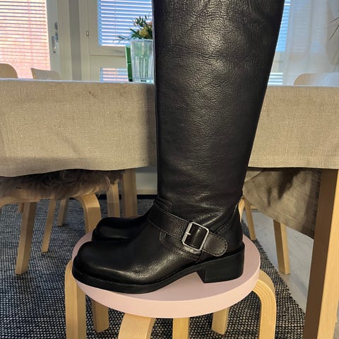 Käyttämättömät H&M saappaat, koko 39. Mustat nauhalliset saappaat, joissa paksu pohja ja niittikoristelu kärjessä ja kantapäässä. Vetoketju sivulla helpottaa pukemista.