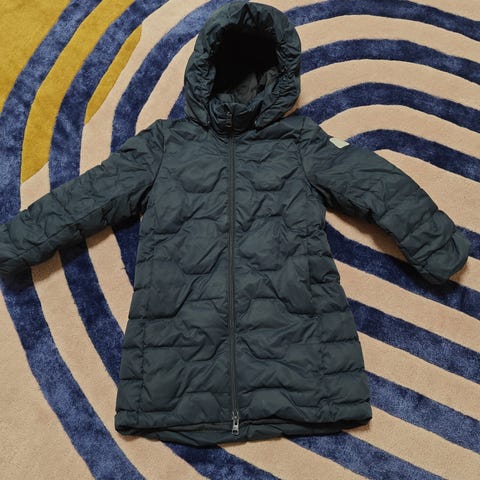 Todella lämmin ja paksu toppatakki, kolmen lumihiutaleen luokitus. Irrotettava, muhkea karvakaulus. Edelleen muhkea ja lämmin. Ainut moite hihoissa hieman kulumaa.
