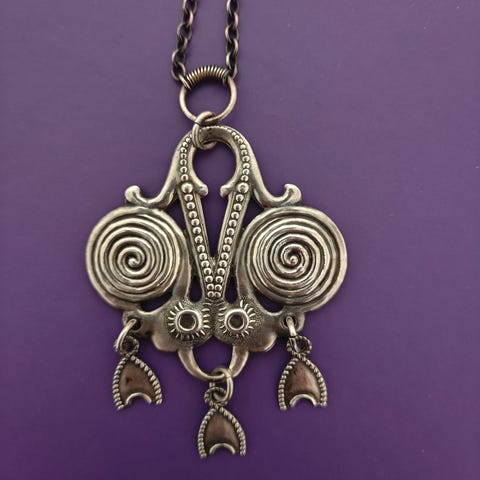 Kaunis näyttävä vanha Kalevala kaulakoru , Hämäläisen emännän kääty. Koru on 80-luvulta. Alkuperäinen pakkaus. Postikulut ostajalle, 6.90
