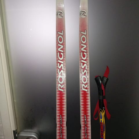 140cm sukset suomupohjalla, SnS-profil side, monot 35,sauvat 115cm hyväkuntoiset, ja täysin ehjä paketti.
