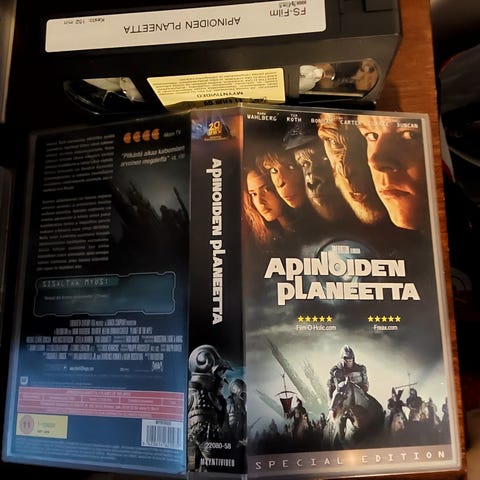 VHS-elokuvapaketti, joka sisältää 10 elokuvaa: U-571, Pearl Harbor, The Fifth Element, Pirates of the Caribbean, Villi joki, Jurassic park, Hellboy, Vietnam ja The day after tomorrow. Kaikki elokuvat ovat VHS-kaseteilla alkuperäisissä koteloissaan. Paketti sopii VHS-elokuvien keräilyyn tai katseluun VHS-soittimella.