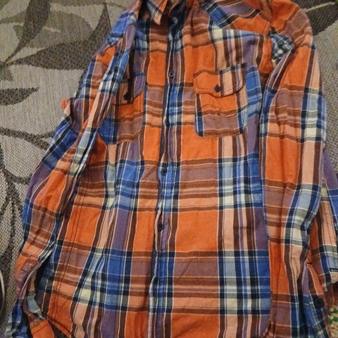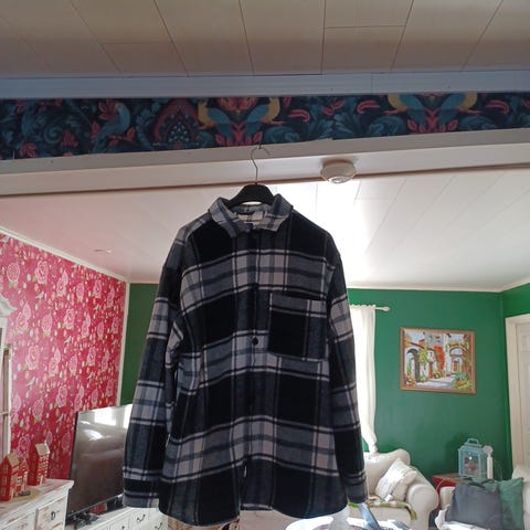 Paksumpaa flanellityylistä materiaalia – sopii hyvin syksyyn ja talveen tai kevyeksi takiksi t-paidan päälle.