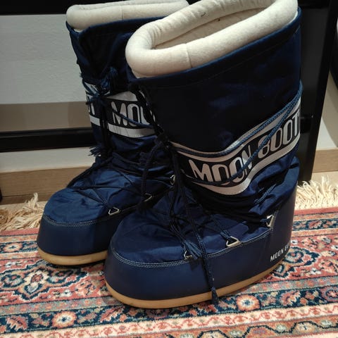 Hyväkuntoiset pari kertaa käytetyt moonbootsit halvalla seuraavalle.