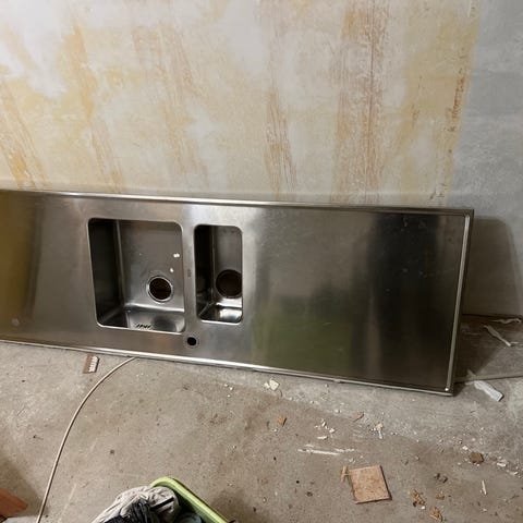 120cm x 60cm tiskipöydän kansi, käytön jälkiä + oraksen hana. Nouto Elimäen kirkonkylältä.