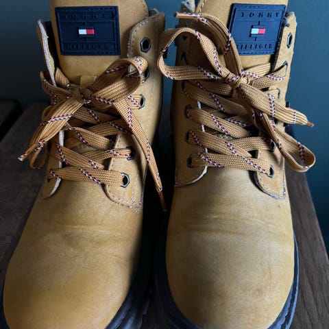 Tommy Hilfiger talvikengät, koko 36. Värinä beige/vaaleanruskea. Kengissä on paksu kumipohja, nauhakiinnitys ja lämmin karvavuori sisäpuolella. Soveltuvat kylmään säähän ja arkikäyttöön.
