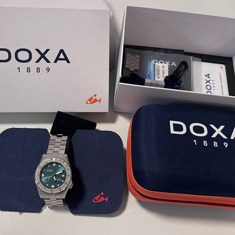 Hyväkuntoinen, ikoninen sukelluskello. Puutteena nupin logon vaurio, näkyy kuvassa ja huomioitu hinnassa. Ranneke noin 19 cm ranteelle, lisäpalat mukaa. Täysi setti kuten kuvista näkyy.