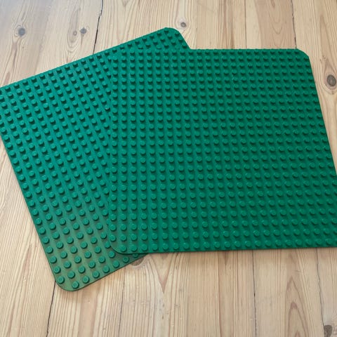 LEGO System rakennusalustat. Yksi isompi harmaa ja kaksi pienempää vihreää. Kaikki hyvässä kunnossa.