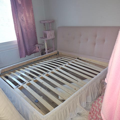 180cm leveä sänky patjoilla ja petauspatjalla.