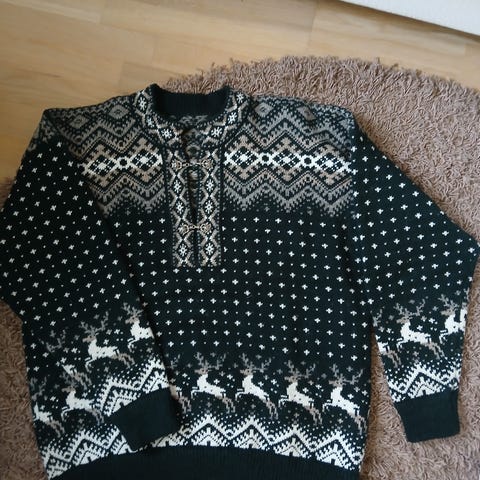 Myydään paksu villapaita. Mitat: hartia-helma 73 cm, kai-kai 57 cm ja hiha 53 cm.
