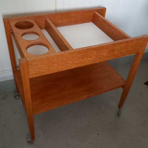 Aito koivusta valmistettu Ikea-klassikko vuosituhannen vaihteesta: Chris Martinin suunnittelema Björko-tarjoilu- ja sivupöytä. Ensimmäiseltä omistajalta, virheettömässä alkuperäiskunnossa. Pyörät alla. Tarjotin on irrotettava, sen alla normaali koivutaso: pöytä soveltuu siis moneen, ei pelkästään tarjoiluun. Tarjottimen halkaisija 50 cm, pöytätason halkaisija 40,5 cm, korkeus 62 cm, alatason mitat 41 x 41 cm, paino n. 8 kg. Kotiinkuljetus järjestyy samaan hintaan Tampereella ja naapurikunnissa, kysäise!