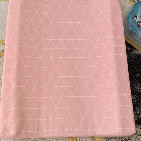 Vaalea hoitoalusta, jossa on korotetut reunat kolmella sivulla. Soveltuu vauvan vaipanvaihtoon ja pukemiseen tasaisella alustalla, kuten pöydällä tai lipaston päällä. Pinta on sileä ja helppo pyyhkiä puhtaaksi.