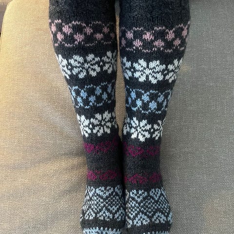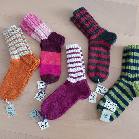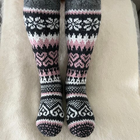 Myydään kuvioidut pitkävartiset käsin kudotut villasukat